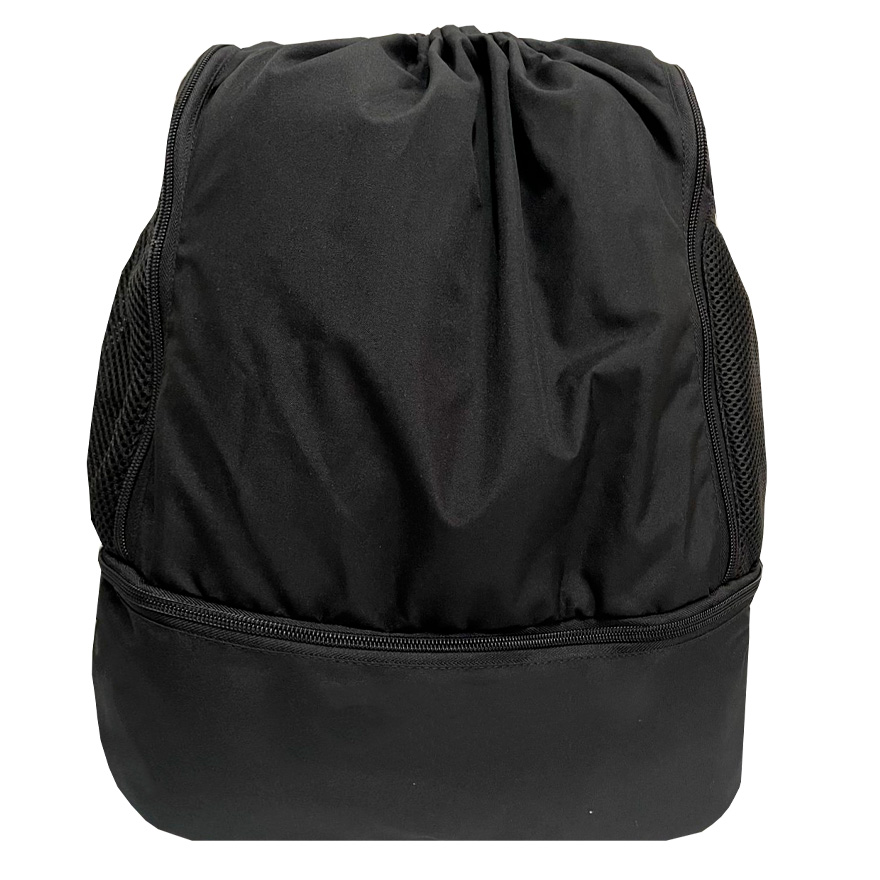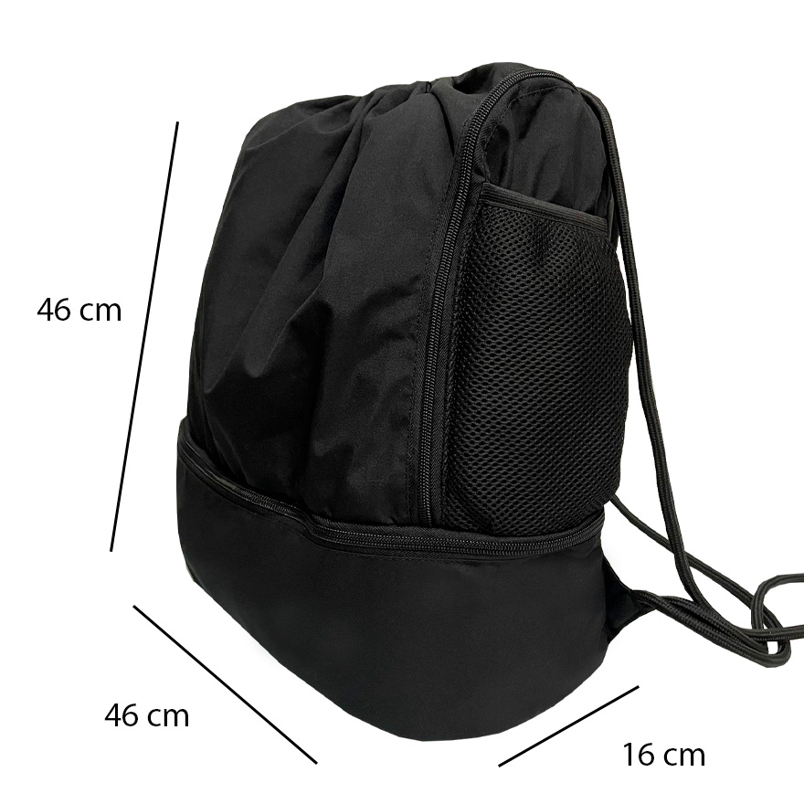 Tula en lona con multiples bolsillos, cuenta con 2 bolsillos externos laterales con cremallera, 2 bolsillos laterales en malla perfectos para termos, 1 bolsillo externo adicional con cremallera de gran espacio. Los cordones aseguran el compartimento más grande y sirven de correa para llevar en la espalda.