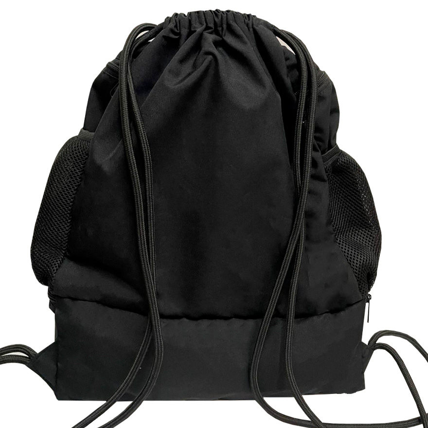 Tula en lona con multiples bolsillos, cuenta con 2 bolsillos externos laterales con cremallera, 2 bolsillos laterales en malla perfectos para termos, 1 bolsillo externo adicional con cremallera de gran espacio. Los cordones aseguran el compartimento más grande y sirven de correa para llevar en la espalda.